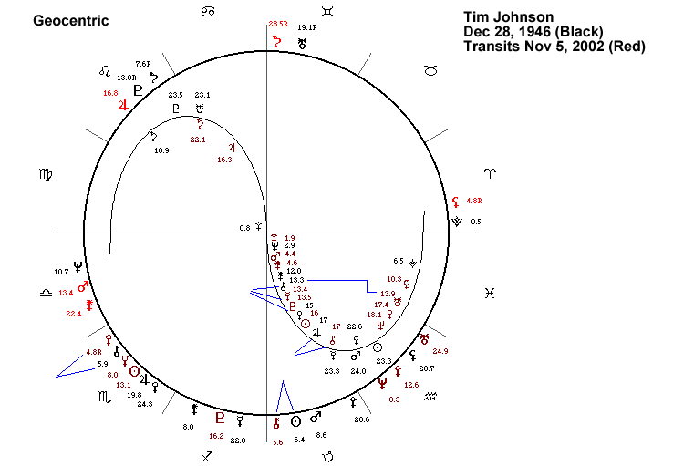 Thune, though defeated is now being looked at to run against Daschle in 2004. Having been loyal to the President, it is likely that Thune would get his backing, and that of the Republican Party, which will again help to a point. But many things change over time, especially in the world of politics. The one thing that is sure is that as can be seen above, before he does run he would be wise to check his most likely trends against those of Mr. Daschle in 2004 using the principles of Magi Astrology.